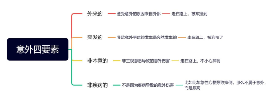 配置意外险之前我们需要先了解什么是意外,意外需要同时满足四个条件,分别是外来的、突发的、非本意的、非疾病的。
